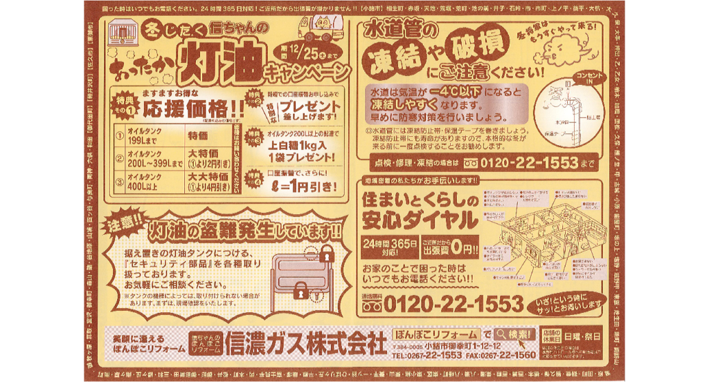 信ちゃんのぽんぽこリフォームでお馴染みの信濃ガスです。