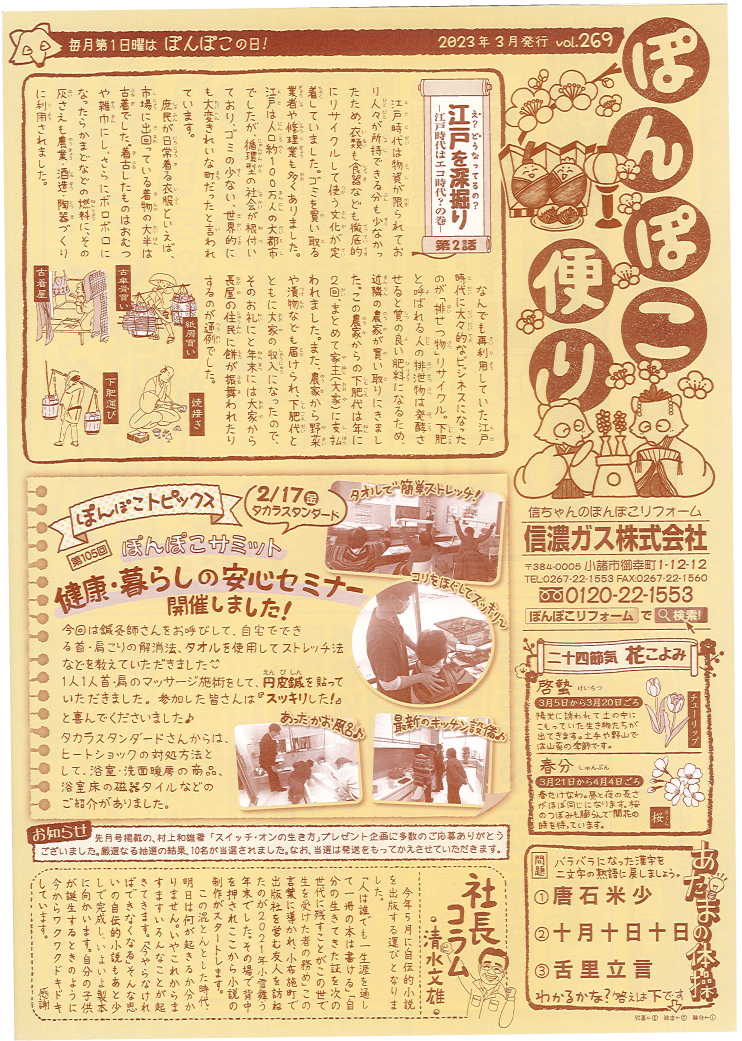 信ちゃんのぽんぽこリフォームでお馴染みの信濃ガスです。