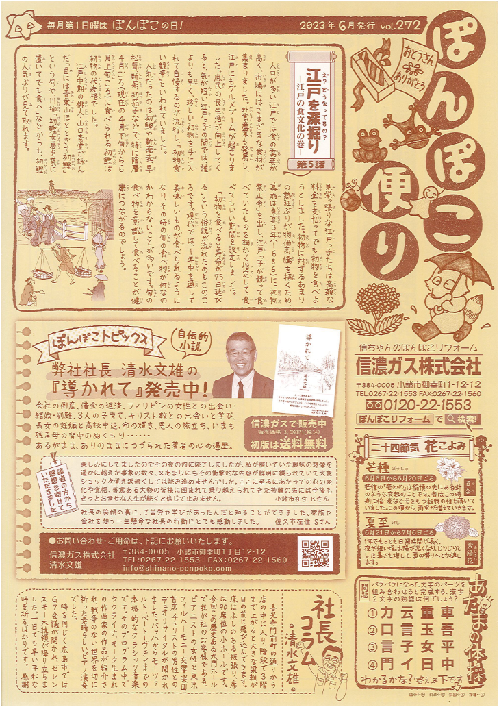 ぽんぽこ便り6月号が発行されました。