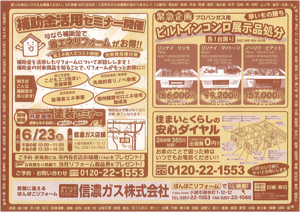 信ちゃんのぽんぽこリフォームでお馴染みの信濃ガスです。