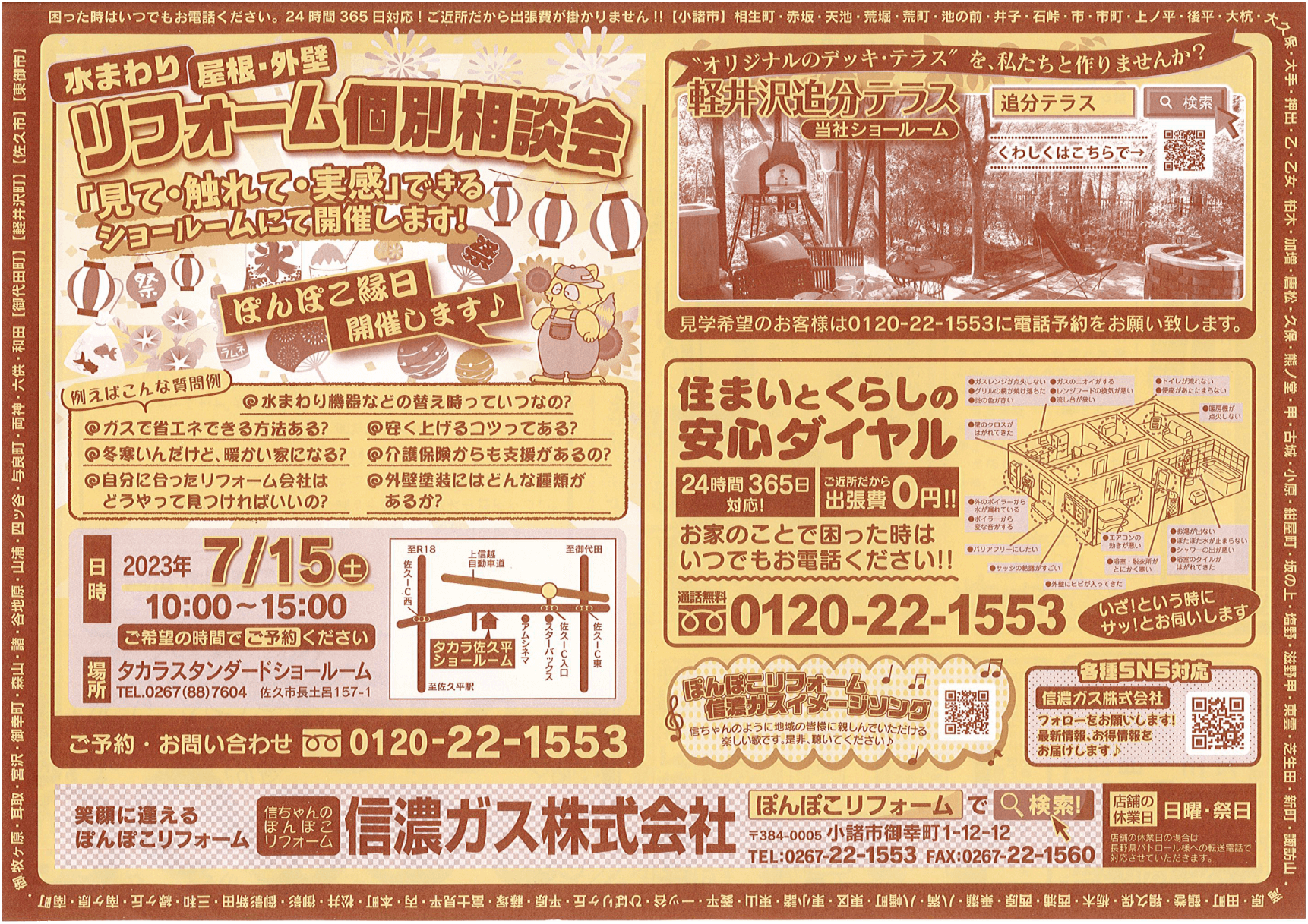 信ちゃんのぽんぽこリフォームでお馴染みの信濃ガスです。