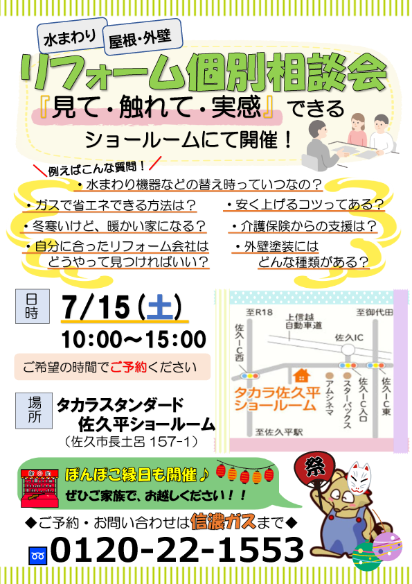 信ちゃんのぽんぽこリフォームでお馴染みの信濃ガスです。