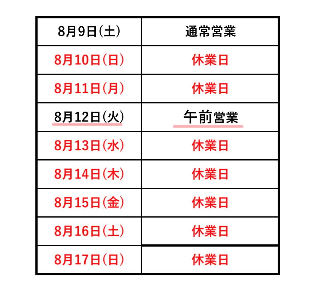 平日8時~17時30分 土曜日8時~16時50分