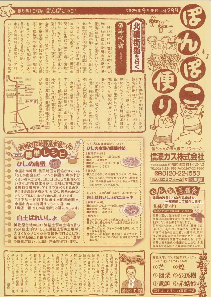 人気コーナー「北国街道を行く」、会長コラム、